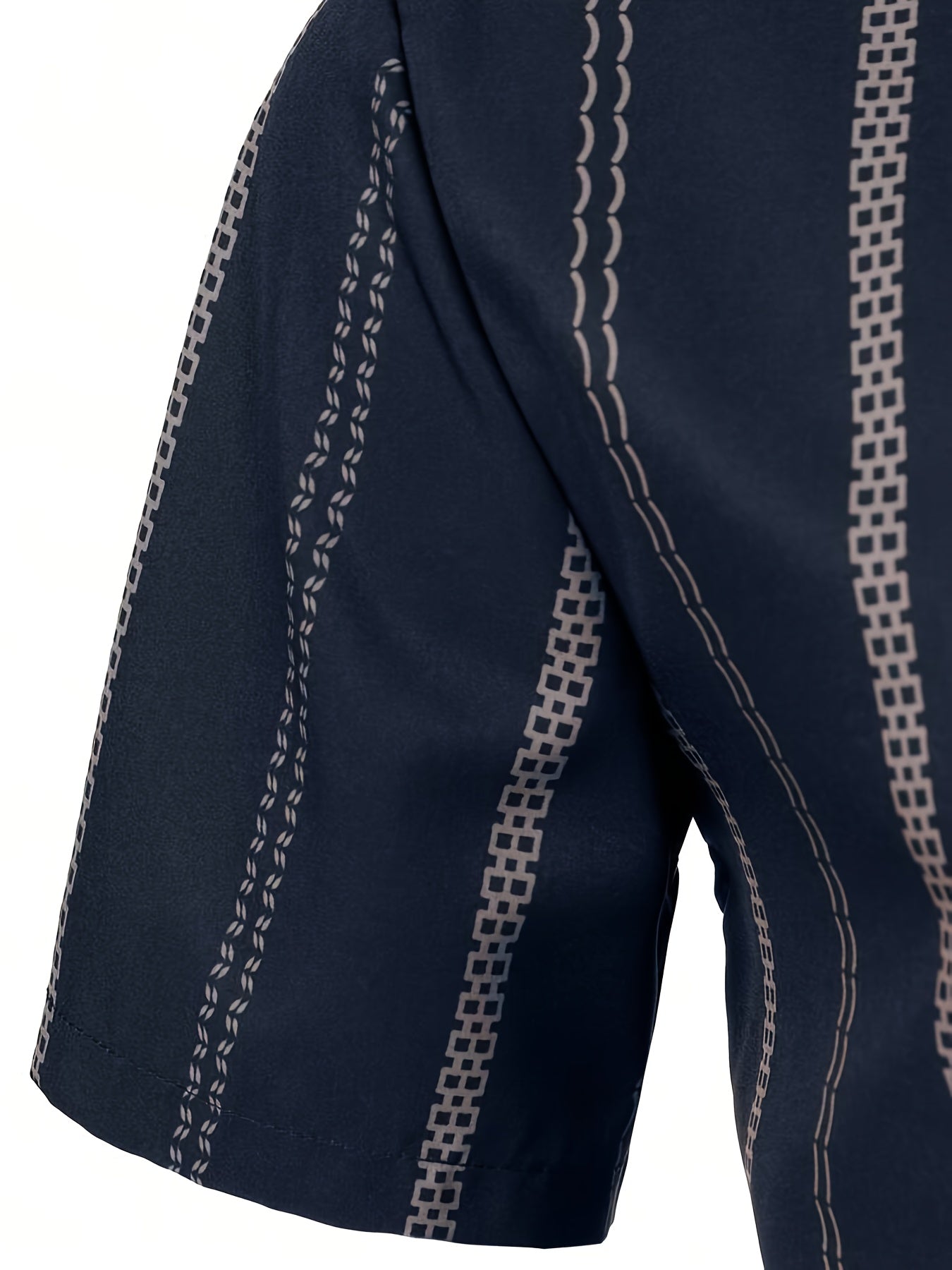 A refined short-sleeve dress shirt featuring a clean vertical stripe pattern that enhances structure and elongation. Crafted in a lightweight, breathable woven fabric, it offers a polished profile suitable for business-casual looks, summer outings, or elevated everyday style.