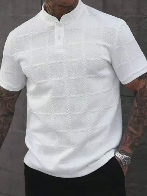 Ribbed button knit polo