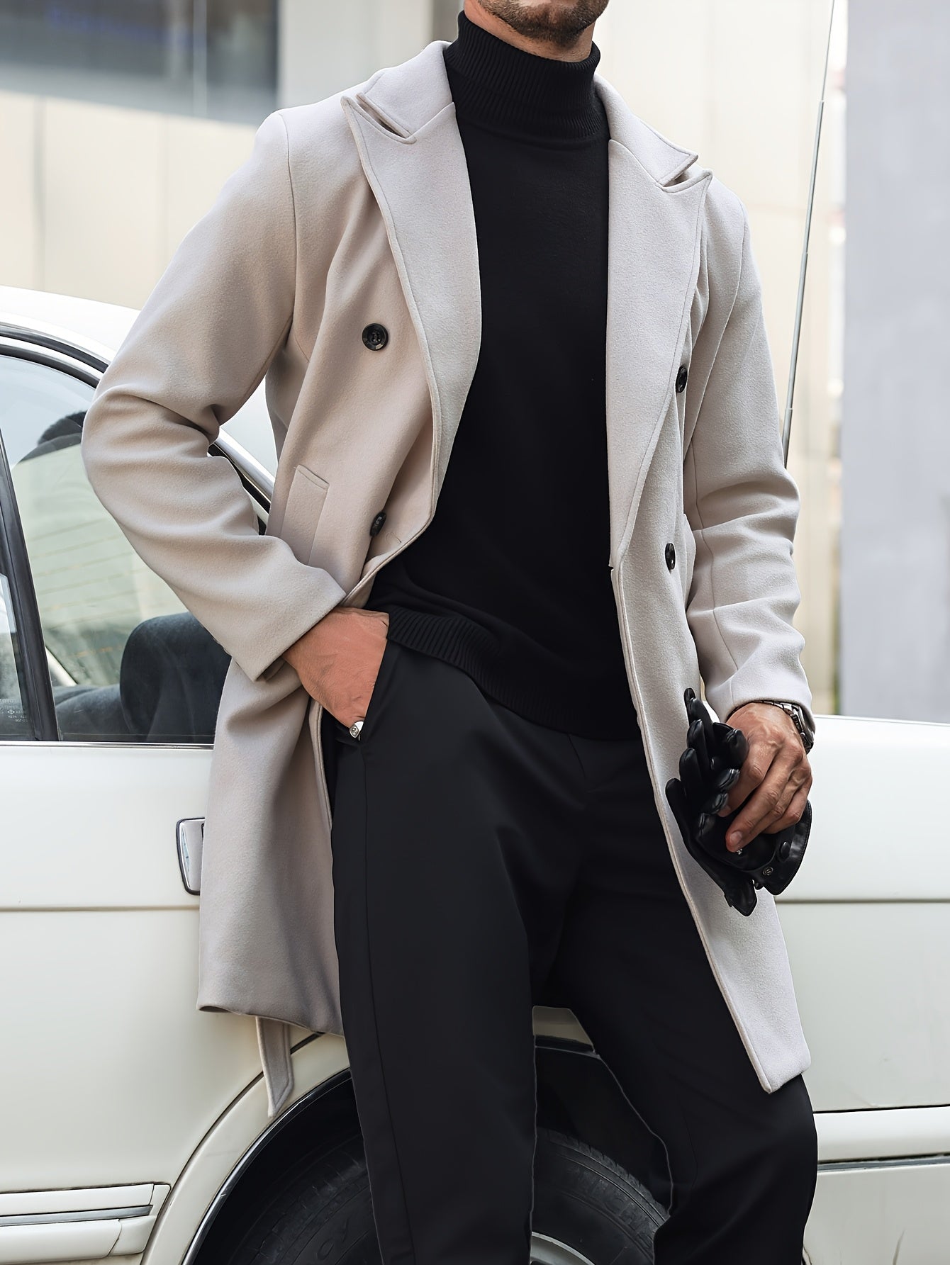 This longline trench coat delivers a refined minimalist silhouette with clean lines, structured shoulders and a button-front closure. Designed in a non-stretch woven fabric, it offers a balanced drape ideal for daily wear, office layering and elevated casual outfits.
